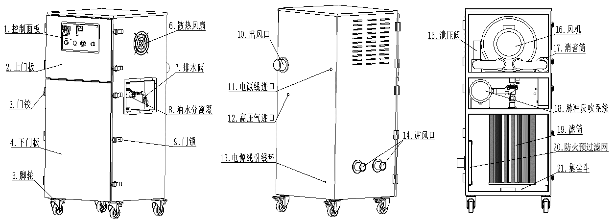 l 激光打标、切割、清洗等金属和晶体材料; l 电焊、机械磨床、手工打磨、研磨、喷砂; l 搅拌、切削、袋装、震动筛网、空气输送、包装等作业的烟尘、粉尘收集净化。 ![]()